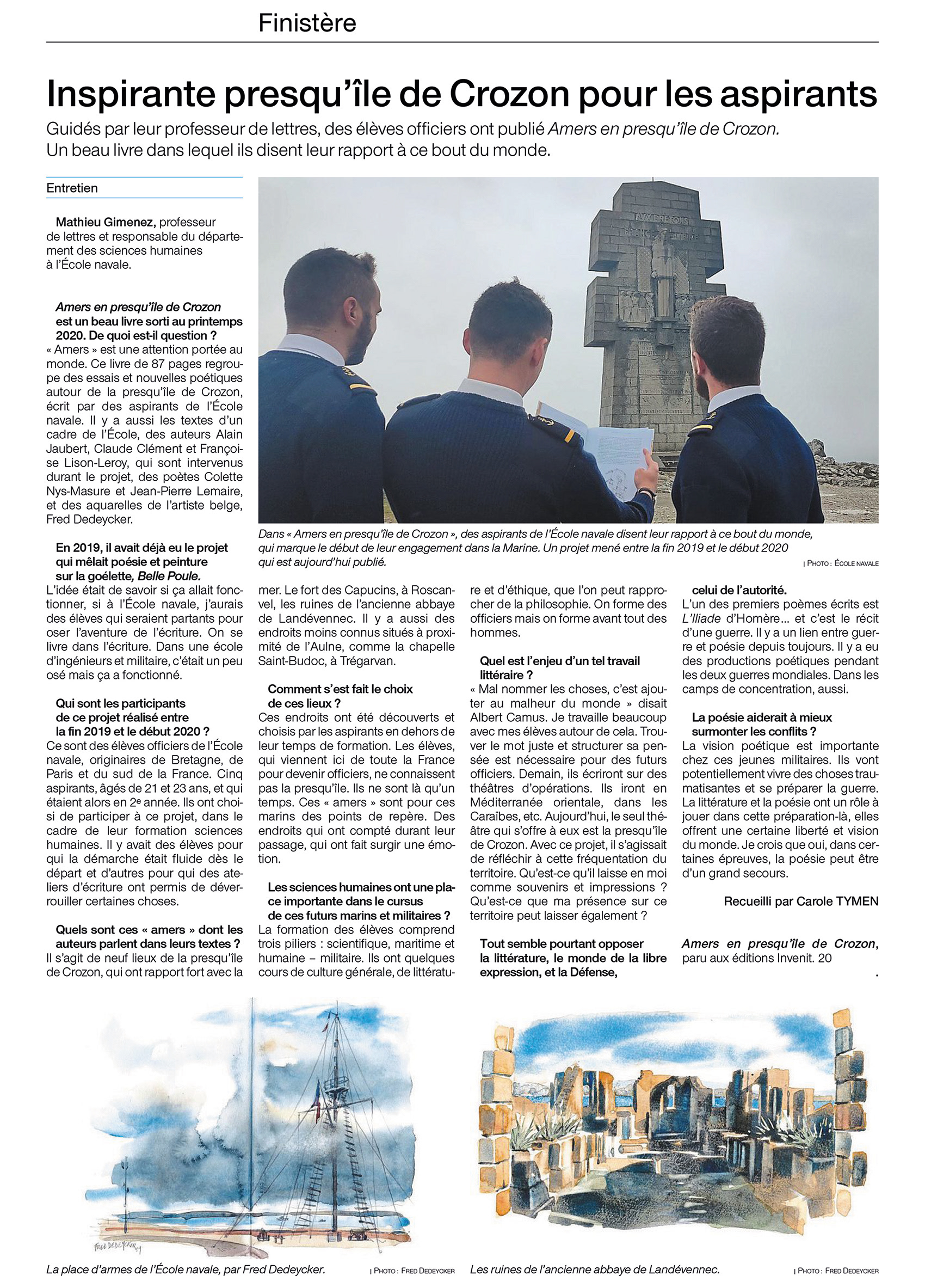 Quelques articles de presse sur le projet des Amers de Crozon parus dans Ouest France et Vers l’Avenir... Plus d'infos sur le livre