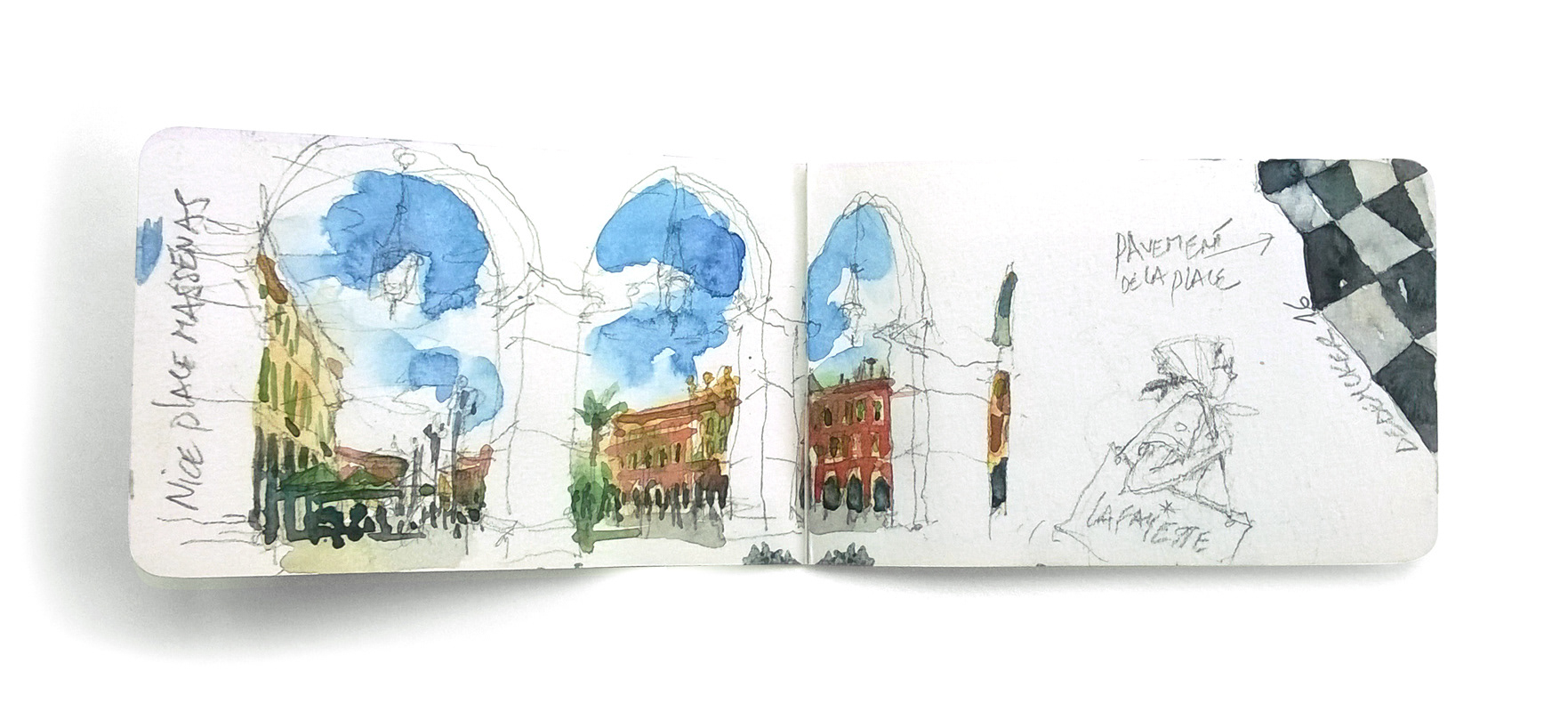Carnets de voyage réalisés lors d'un périple à Nice. La plupart des dessins ont été réalisés sur le motif. Les techniques sont l'aquarelle, le dessin au crayon ou bic sur carnet Moleskine.